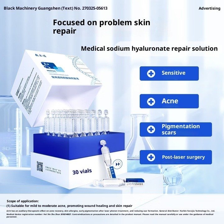 This medical-grade repair solution is enriched with sodium hyaluronate to deeply hydrate and restore skin. Designed to support skin repair and improve moisture retention, each vial delivers precise, convenient application for healthy, smooth, and revitalized skin.